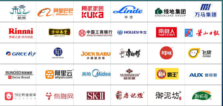 下面是我们服务过的部分用户。例如有阿里巴巴、林德、顾家家居、绿地集团、万马集团、林内、方回春堂、中国工商银行、华立、南极人、萧山日报、格力、小袋鼠巴布、康师傅、百草味、飞猪、斯诺威登、阿里云、美的、霸王、奥克斯、51公积金管家、有融网、御泥坊等等。